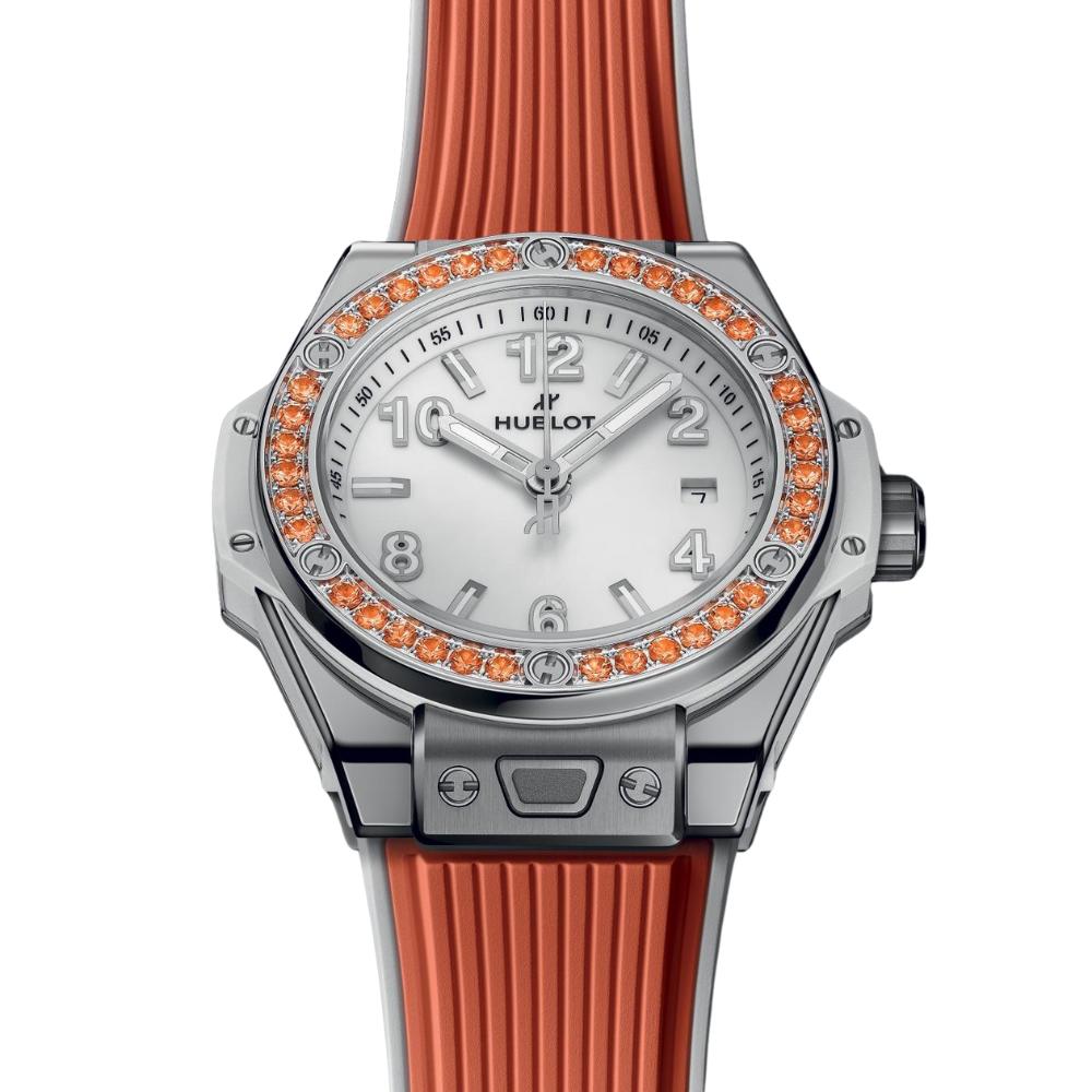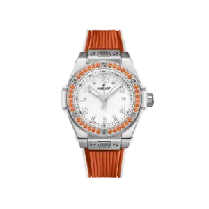The Big Bang One Click Joyful Steel Orange channels Hublot’s fusion of Swiss expertise and vibrant design. Its energetic orange hue, combined with reliable mechanics, makes it a luxury companion for everyday wear. A joyful, distinctive piece for women who want color and confidence on their wrist.