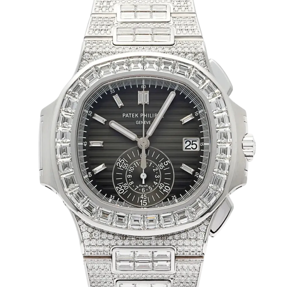 With its bold contrast, technical sophistication, and full diamond embellishment, the Patek Philippe Nautilus 5980/1400G-010 is an icon of haute horlogerie and luxury lifestyle. A coveted piece among collectors, it is a watch that not only measures time but defines it — with brilliance.