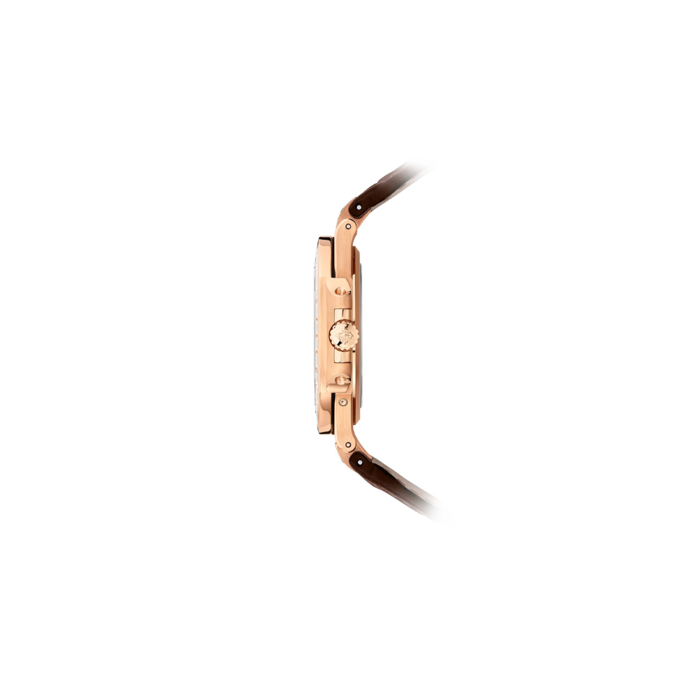 • Luxurious rose gold case with baguette diamond-set bezel.