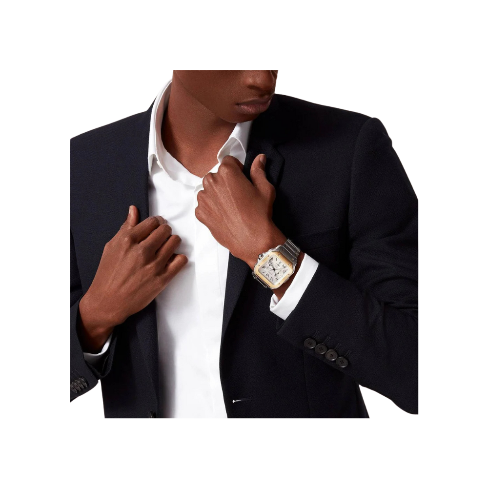 Completing this luxury sports watch is Cartier’s innovative QuickSwitch system, allowing you to easily alternate between the steel and yellow gold bracelet and a leather strap, offering versatility from boardroom to weekend.